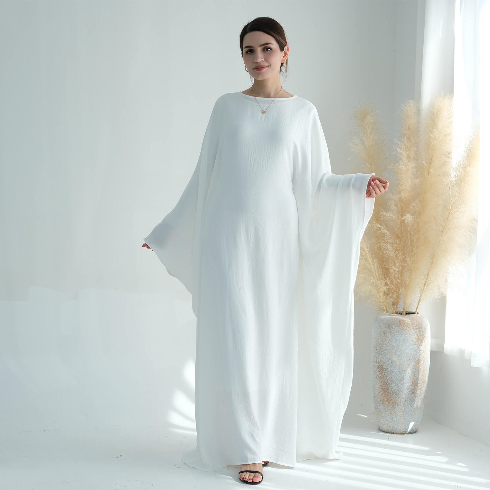 Whether you’re heading out for a quiet afternoon or dressing up for a meaningful moment, the White Butterfly Abaya moves with you — softly, simply, beautifully.